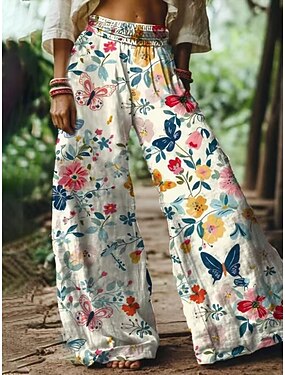 Per donna Pantaloni ispirati al lino Gamba larga Pantaloni Palazzo Moda Boho Lunghezza intera Vita Alta Fiore Elastico in vita Traspirante Confortevole Micro-elastico Streetwear Abbigliamento