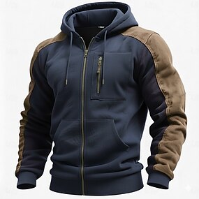Per uomo Felpa con cappuccio a zip intera Felpa con cappuccio tattica Nero Blu marino Con Cappuccio Semplice Cerniera Casuale Quotidiano Sport & Outdoor Poliestere Streetwear Cool Abbigliamento