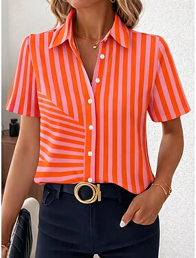 Per donna Maglietta Stampato Grafico Geometrico A righe Vintage Elegante Classico Manica Corta Girocollo Top Regolari Quotidiano Blu Nero Bianco Blu Reale Viola Estate Primavera