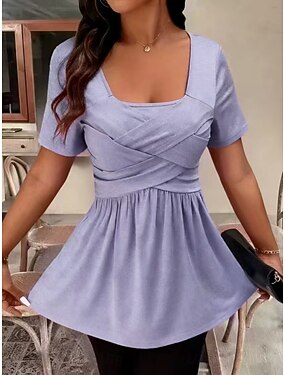 Per donna Maglietta Semplice Moda Elegante Classico Manica Corta Collo quadrato Top Regolari Quotidiano Uscire Weekend Nero Verde chiaro Vino Viola chiaro Marrone Estate Primavera
