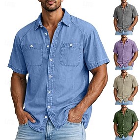 Per uomo Camicia Camicia casual Camicia con Bottoni Camicia 100% cotone lavaggio acido Blu Nero Verde chiaro Viola Verde Manica Corta Semplice Colletto a Camicia Casuale Quotidiano Tasca Frontale