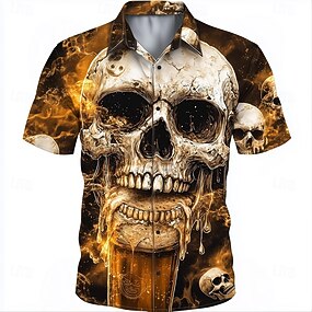 Per uomo 3D Birra dell'Oktoberfest Teschi Camicia Camicia Estiva Camicia con Bottoni Manica Corta Vintage Retrò All'aperto Ferie Estate Primavera Collo ripiegato Stampa 3D camicie con colletto Nero 1