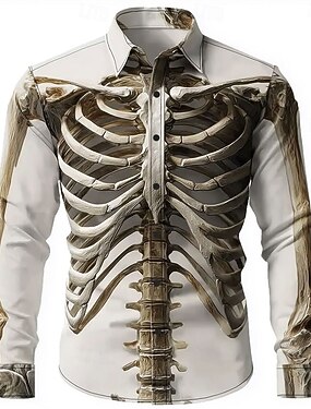 Per uomo Illusione ottica Scheletro Camicia Camicia con Bottoni Manica Lunga Stile gotico oscuro All'aperto Ferie Primavera Autunno Collo ripiegato Stampa 3D Camicia tipo lino Bianco 1 Bianco n.2