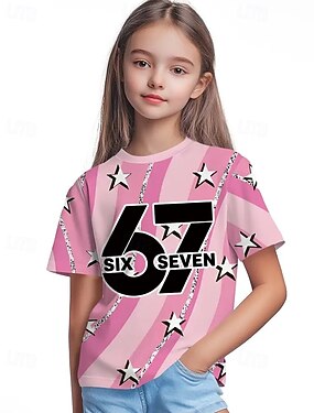 Ragazze 3D Grafico Gergo divertente 67 Maglietta Manica Corta Stampa 3D Estate Primavera Sport Moda Streetwear Bambini 4-12 Anni Girocollo All'aperto Casuale Quotidiano Vestibilità regolare