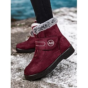 stivali da neve invernali bordeaux da donna con fodera in pelliccia sintetica, cinturino in velcro e suola antiscivolo - calzature calde e comode per il freddo