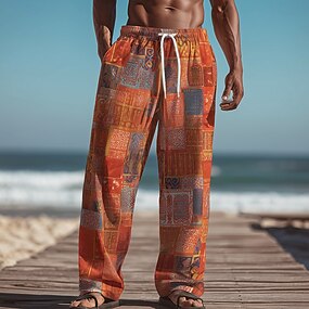 Per uomo Azteco Tribale Etnico Pantaloni Pantaloni casual Pantaloni Larghi Misura del girovita medio Boho Vintage Retrò Casa All'aperto Vacanza Coulisse elastica in vita Pantaloni tipo lino con tasche