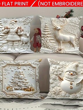 Set di 4 federe per cuscini natalizi bianchi con Babbo Natale, pupazzo di neve e albero di Natale &federe per cuscini festivi con motivi di renne per divano e arredamento del soggiorno