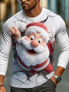 Natale Per uomo Babbo Natale Divertente Maglietta Manica Lunga maglietta Stampa 3D Girocollo Camicia Moda Essenziale 3D Streetwear Casuale Quotidiano Bianco Rosso Estate Primavera Abbigliamento S M L