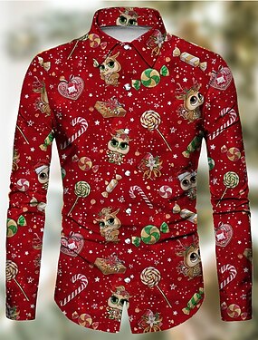 Natale Per uomo Babbo Natale Albero di Natale omino di pan di zenzero Camicia elegante Camicia con Bottoni Manica Lunga Casual Abbigliamento da sera Quotidiano Festival Autunno Inverno Primavera