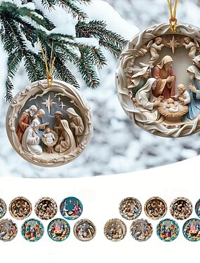 18 pezzi presepe ornamenti religiosi natale acrilico 2d ornamento appeso natività ornamento natale la nascita di gesù decorazioni natalizie cristiane per albero natale