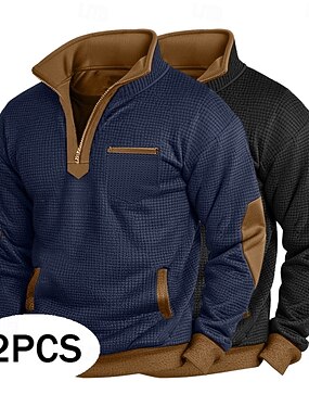Per uomo Maglietta Manica Lunga Zip a un quarto Estate Tinta unica Moda Designer Essenziale Cerniera All'aperto Vacanza Lavoro blu navy Nero Bianco Maglietta Top per Uomo