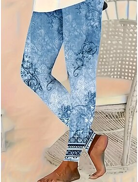 Per donna Leggings Vacanza Vintage Moda Lunghezza alla caviglia Vita Alta Floreale Grafico Paisley Stampa Morbido Traspirante Alta elasticità All'aperto Quotidiano blu navy Blu chiaro Primavera