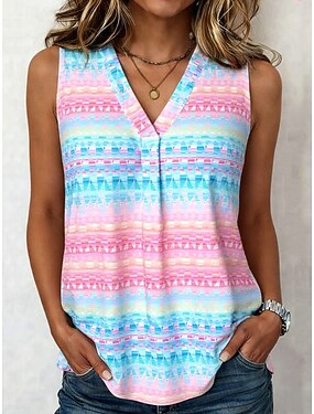 Per donna Camicia Stampato Grafico Geometrico Elegante Vintage Tropicale Senza Maniche Scollo a V Top Regolari Quotidiano Blu Estate Primavera
