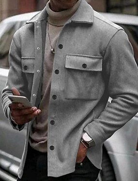 Per uomo Giacca Camicia Giacca di transizione Quotidiano Leggero Tasca Primavera Semplice Streetwear Bavero Regolare Nero Grigio chiaro Grigio scuro Giacca