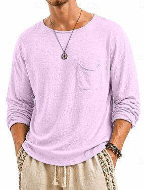 Per uomo Maglia Henley Maglietta in lino Manica Lunga A barca Estate Primavera Tutte le stagioni Tinta unica Vintage Stile Boho Casual Puro Casuale Vacanza Streetwear Nero Bianco Verde chiaro