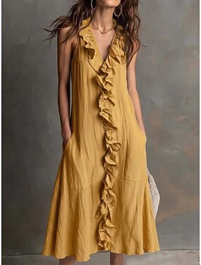 Abito Midi da Donna in 100% Cotone Abito a Finta Lino Abito Estivo Casual Giornaliero Vestibilità Larga Semplice Maniche Senza Maniche Collo U Nero Bianco Rosa Estate
