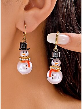 orecchini natalizi in lega da donna con design a pupazzo di neve e fiocco di neve, perfetti per la moda delle feste e come regalo festivo