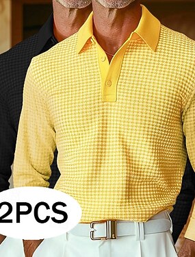 Per uomo Magliette Polo a Nido d'Ape Testurizzato Maglia da golf Manica Lunga Colletto Bavero Primavera Autunno Tutte le stagioni Semplice Testurizzato Essenziale Moderno Casual 2 Pezzi Bottoni