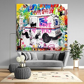 dipinto a mano ti amo luminoso strada pop art dipinto su tela decorazione da parete fatta a mano moderna motivazione extra large arte graffiti pittura a olio urbana pronta da appendere pittura regalo