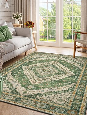 tappeto a medaglione verde, design vintage invecchiato, perfetto per decorare il pavimento del soggiorno, della camera da letto o dell'ufficio