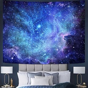 Arazzo da parete con nebulosa galassia viola blu intenso, cielo notturno stellato, spazio esterno, bagliore etereo, arazzo cosmico per camera da letto, soggiorno, dormitorio, sfondo estetico