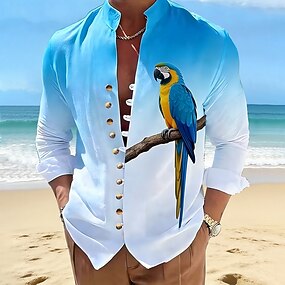 Per uomo Uccello Pappagallo Colore sfumato Camicie hawaiane Camicia Aloha Camicia con colletto alla coreana Manica Lunga Hawaiano Casual Quotidiano Vacanza al Mare Estate Primavera Collo alla coreana