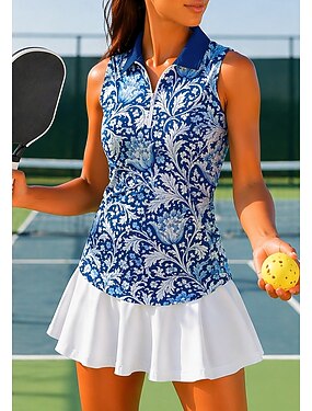 Per donna Floreale Top Maglietta sportiva Polo da golf Maglia da tennis Senza Maniche Cerniera Floreale UPF50+ Resistente ai Raggi UV Alta elasticità Traspirante Pallavolo Tennis Golf Collo ripiegato