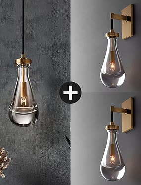 Lampada a sospensione a led2 pezzi applique da parete oro nero ottone massiccio vetro serie goccia di pioggia per soggiorno cucina corridoio muro scone luci da parete per interni