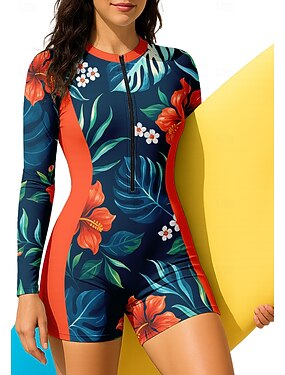 Per donna Top sottomuta Rash Guard completo per il corpo Costume da surf intero Floreale Tropicale Con zip con reggiseno incorporato Cerniera Frontale Protezione Solare UV Coppa larga UPF50+ Manica
