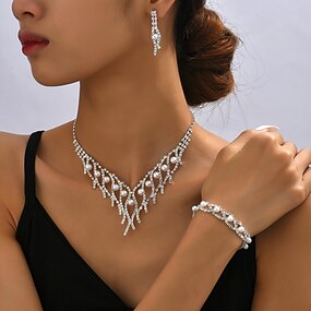 Set di gioielli da sposa 1 set perle imitate diamanti imitati 1 collana 1 bracciale orecchini gioielli eleganti in frange a nappina europei per matrimonio anniversario festa serale