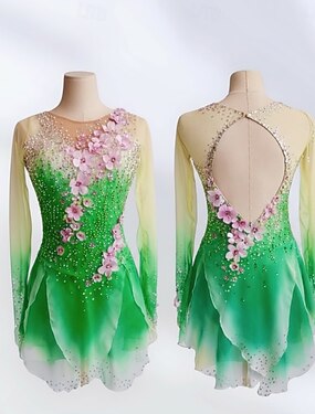 Abito da pattinaggio artistico Per donna Pattinaggio sul ghiaccio Vestito Verde Patchwork Schiena aperta Alta elasticità Allenamento Competizione Vestiti da pattinaggio sul ghiaccio Classico