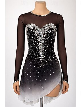 Abito da pattinaggio artistico Per donna Pattinaggio sul ghiaccio Vestito Nero Patchwork Schiena aperta Elasticizzato Allenamento Competizione Vestiti da pattinaggio sul ghiaccio Classico Cristallo