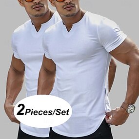 Per uomo Maglietta Stile casual Manica Corta Scollo a V Estate Tutte le stagioni Semplice Moda Classico Casual 2 Pezzi Confezione multipla Puro Streetwear Casuale Sportivo Nero + Nero Bianco + caff