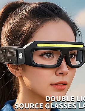 Occhiali con fari a LED - ricarica USB-C, resistenti all'acqua IPX4, attivazione tramite sensore di movimento, 3 modalità di illuminazione, stanghette regolabili, adatti per corsa, ciclismo e attività