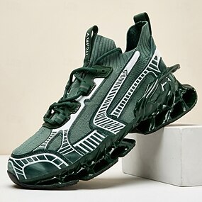 Scarpe da ginnastica da uomo stringate, verdi, da corsa con suola ammortizzante per allenamento, attività all'aperto e sport.