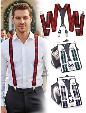 bretelle natalizie da uomo: tessuto elastico con molteplici fantasie, regolabili ed eleganti, perfette per feste e occasioni formali