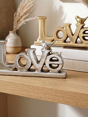 decorazioni vintage con lettere d'amore, dorate &Ornamento da tavolo in resina con lamina argentata, decorazione per la casa in stile retrò per feste, matrimoni, ristoranti, vetrine, oggetti di scena