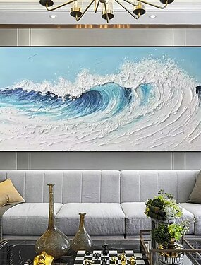 dipinti ad olio 3D fatti a mano Mintura con onde bianche su tela, decorazione murale moderna astratta con texture paesaggistica per l'arredamento della casa, dipinti arrotolati senza cornice e non