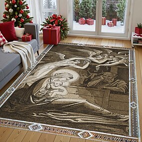 Tappeto con presepe natalizio per soggiorno e camera da letto tappeto con finta cashmere della nascita di Gesù con Maria Giuseppe e il bambino Gesù arte religiosa natalizia tappeto morbido