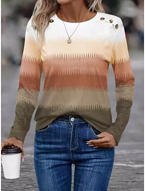 Per donna Maglietta Stampato Ombre Grafico Astratto Moda Elegante Classico Manica Lunga Girocollo Top Regolari Quotidiano Weekend Blu Rosso Arancione Estate Primavera Autunno