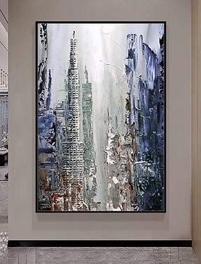 dipinto originale fatto a mano paesaggio urbano dipinto ad olio su tela grande paesaggio urbano astratto colorato dipinto acrilico arte moderna blu e bianca decorazione murale soggiorno