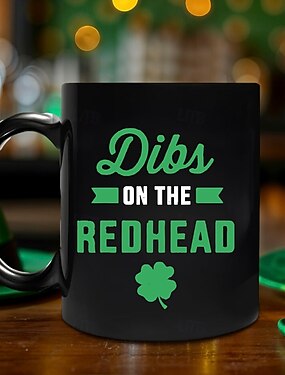 Tazza regalo per il giorno di San Patrizio "Dibs on the redhead" con divertente motivo a trifoglio, perfetta tazza da caffè in ceramica per le celebrazioni delle feste e l'orgoglio irlandese