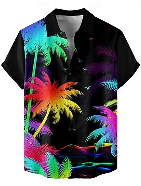 Per uomo Colorato Albero di Cocco Piante Tropicali Camicia hawaiana estiva Camicia con Bottoni Camicia Aloha Manica Corta Hawaiano Vacanza Ferie Abbigliamento mare Estate Primavera Collo ripiegato
