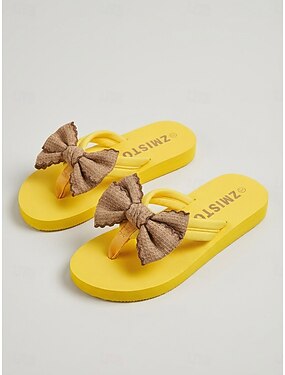 Infradito da donna giallo brillante con fiocco marrone, perfette per vacanze al mare, relax a bordo piscina e vacanze estive.