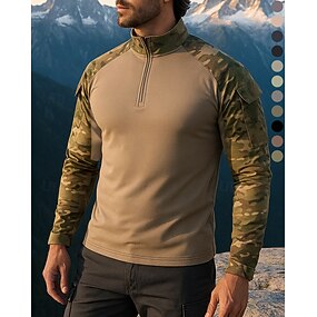 Per uomo Felpa con mezza zip Felpa militare Manica Lunga Collo alla coreana Top Esterno Traspirante Primavera Autunno Misto Cotone Mimetico Grigio scuro pitone nero Nero Viaggio Corsa
