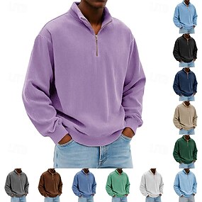 Per uomo Maglia Velluto a coste Felpa con cappuccio Maglione Felpa con zip corta Blu Blu denim Nero Bianco Blu marino Colletto Mao Semplice Cerniera Testurizzato Casuale Quotidiano Sport & Outdoor