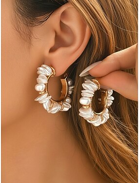orecchini a cerchio da donna in stile bohémien con perle artificiali, delicati &Elegante, perfetto per le vacanze al mare, per l'abbigliamento casual di tutti i giorni, e come accessorio per matrimoni