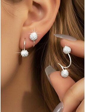 orecchini a cerchio in lega da donna con design a sfera tempestato di cristalli, eleganti e alla moda per un abbigliamento casual e serale