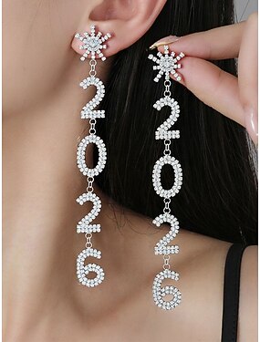 orecchini pendenti in lega di zirconi da donna – scintillante design per l'anno 2026, disponibili in oro e argento per feste e occasioni speciali