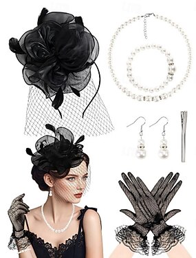 Guanti Collana Cappello Fascinator Gentildonna Costume Per donna Mascherata Feste Ascot Festival delle corse di cavalli Adulti Copricapo Tutte le stagioni